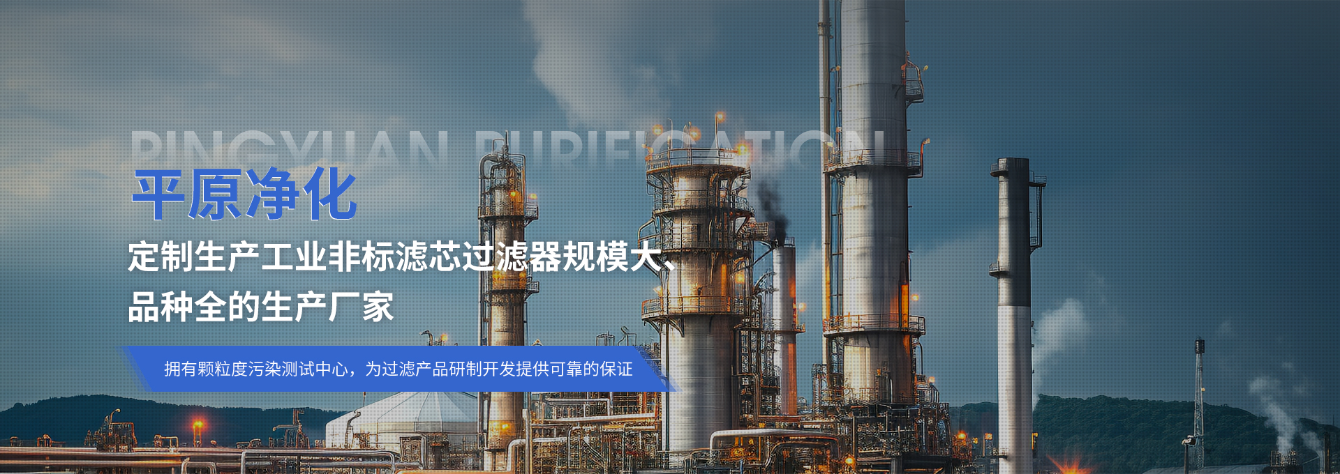 新鄉(xiāng)市平原凈化技術(shù)有限公司,位于新鄉(xiāng)市建北一路116廠北地工業(yè)區(qū)。公司是從事流體分離與凈化設(shè)備研發(fā)、生產(chǎn)、經(jīng)營的企業(yè)。是目前國內(nèi)生產(chǎn)各種工業(yè)非標(biāo)濾芯過濾器規(guī)模較大、品種較全的生產(chǎn)廠家之一。擁有顆粒度污染測試中心,為過濾產(chǎn)品研制開發(fā)提供可靠的保證。如:石油化工、天然氣及煤層氣凈化過濾裝置,各種空氣凈化裝置,高溫除塵凈化裝置,油水分離裝置,油氣分離器 以及各種液體精密過濾器等。公司秉承“鑄人品,造精品......